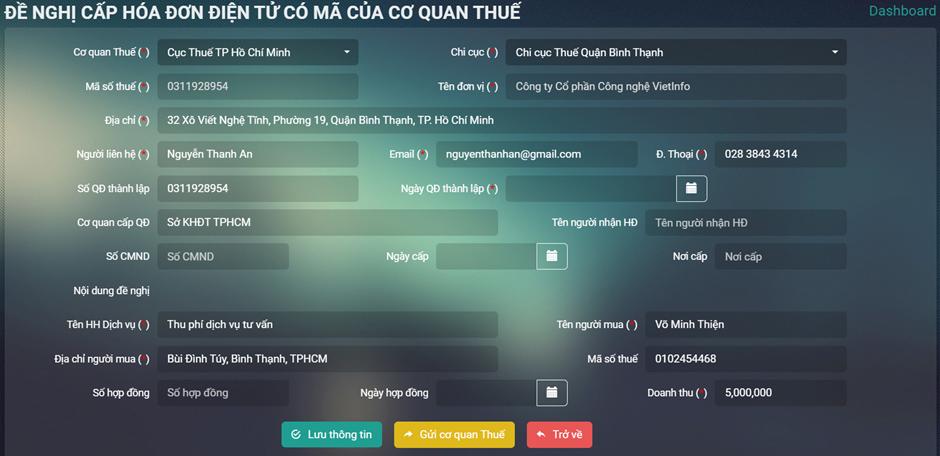 Đề nghị cấp hóa đơn điện tử có mã của Cơ quan Thuế