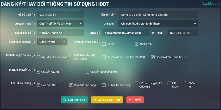 Đăng ký/thay đổi thông tin sử dụng HĐĐT: