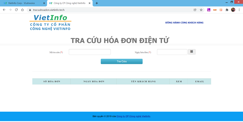 Website tra cứu hóa đơn: https://tracuuhoadon.vietinfo.tech