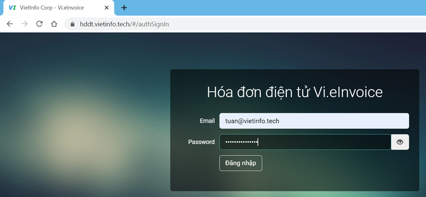 Website sử dụng phần mềm: https://hddt.vietinfo.tech