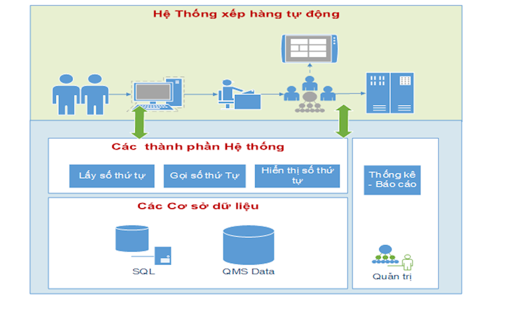 Hệ thống xếp hàng tự động bao gồm các thành phần: